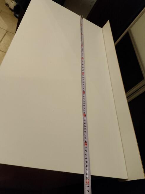 Białe biurko z płyty, wymiary na zdjęciach. Odbiór osobisty. Dwie szuflady i szafka, szuflada na szynach.