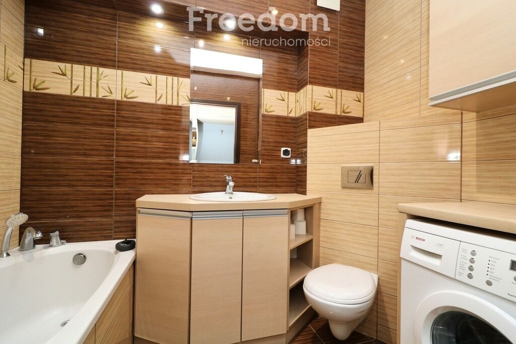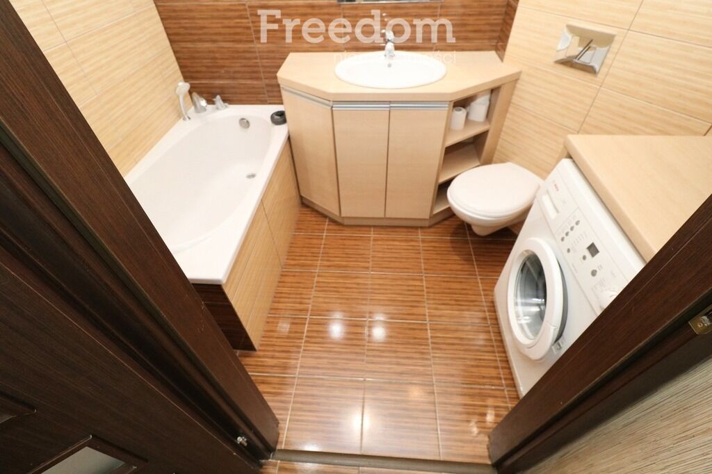 4) Łazienka z wanną, pralką, lustrem oraz umywalką,